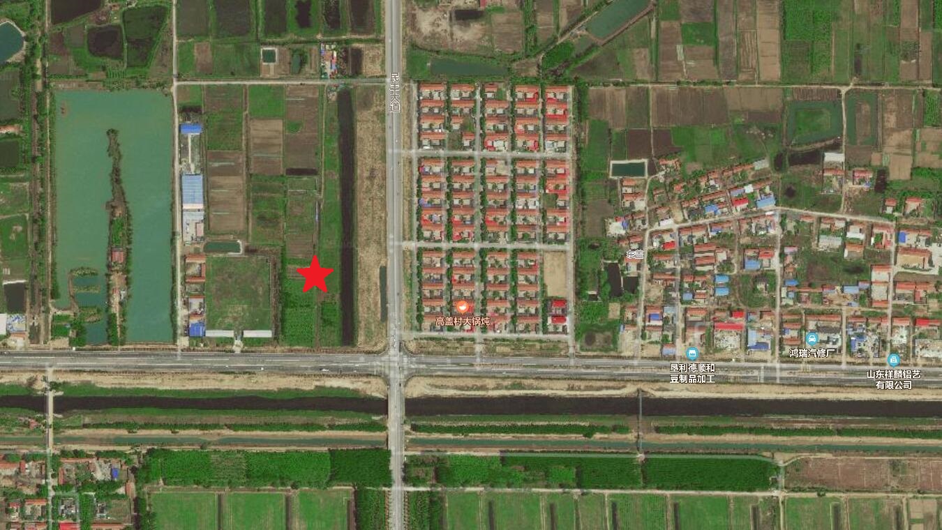 該項(xiàng)目距離東側(cè)民豐路路邊46m,該加油站位于東營市墾利區(qū)德州路與民豐路交叉口西北側(cè)。東側(cè)為民豐路,用地邊界距路邊46m,路東距用地邊界約100m處為高蓋村(人口約800人),其村內(nèi)幼兒園距站區(qū)邊界約720m。南側(cè)為德州路,用地邊界距路邊8.5m,路南為空地。西南方向約400m處為王營村。西側(cè)為樹林,北側(cè)為空地。 |