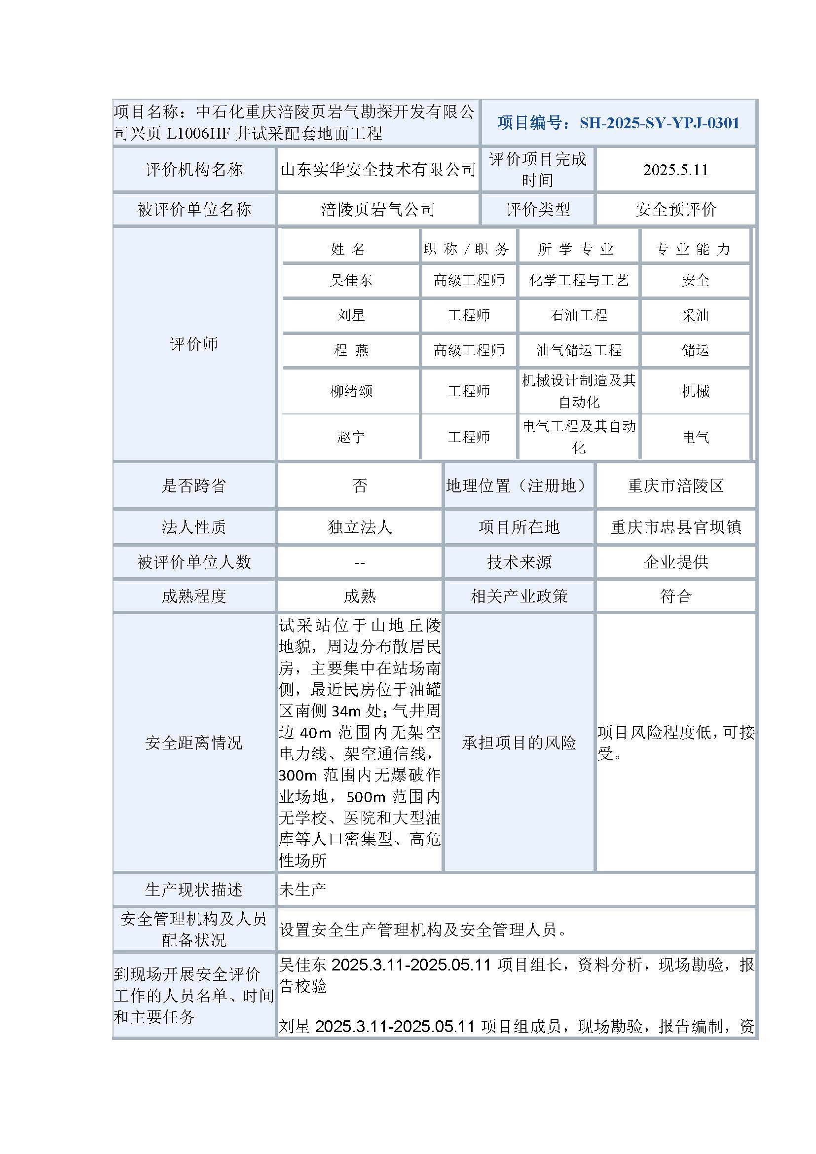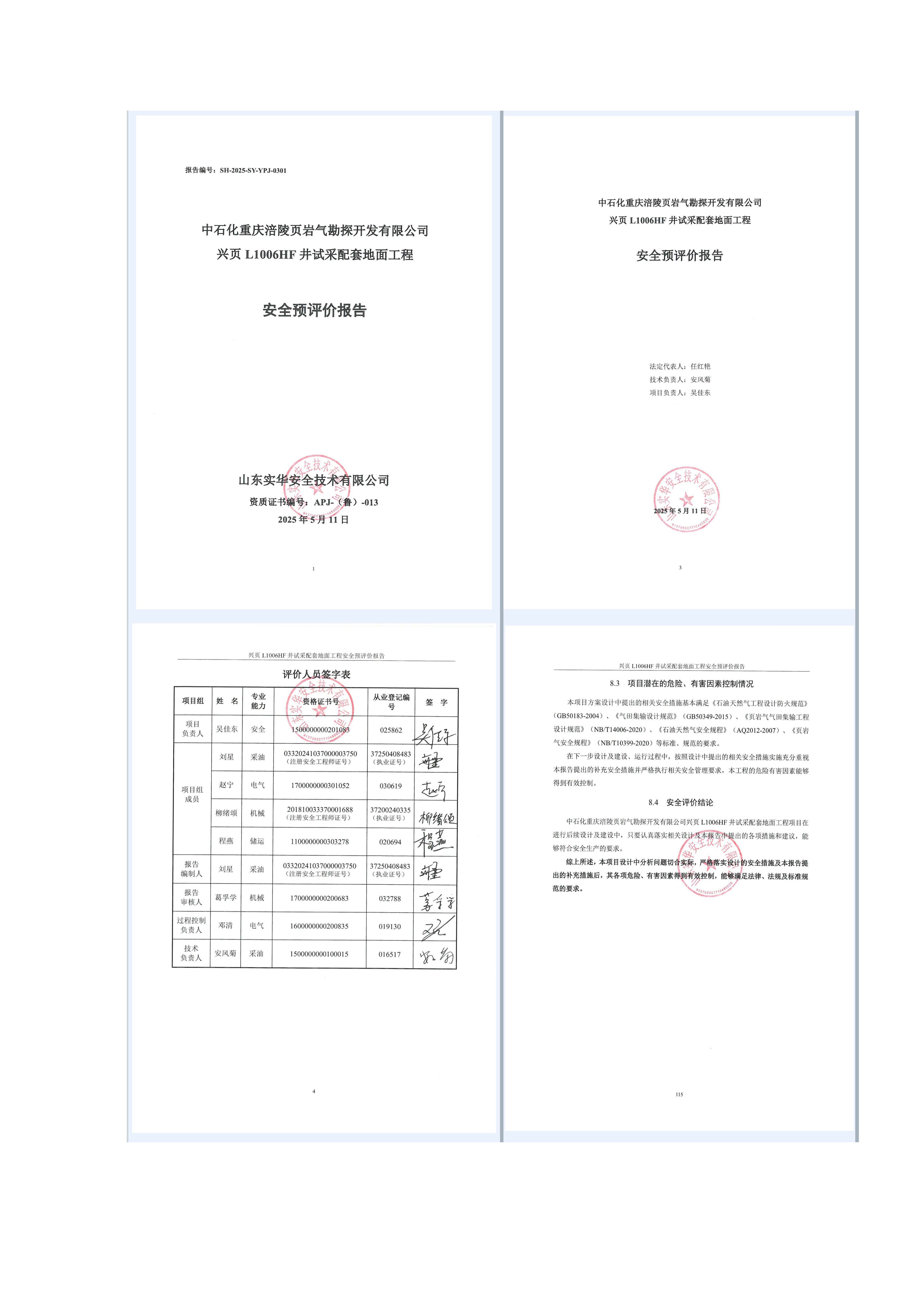中石化重慶涪陵頁巖氣勘探開發(fā)有限公司興頁L1006HF井試采配套地面工程安全預(yù)評價(jià)