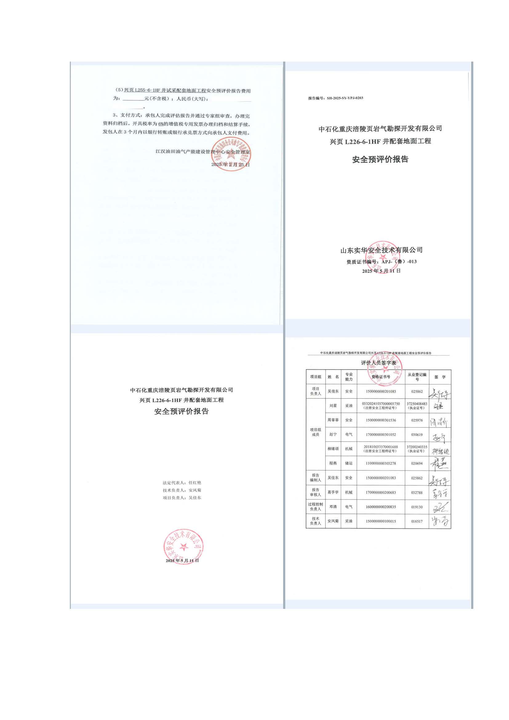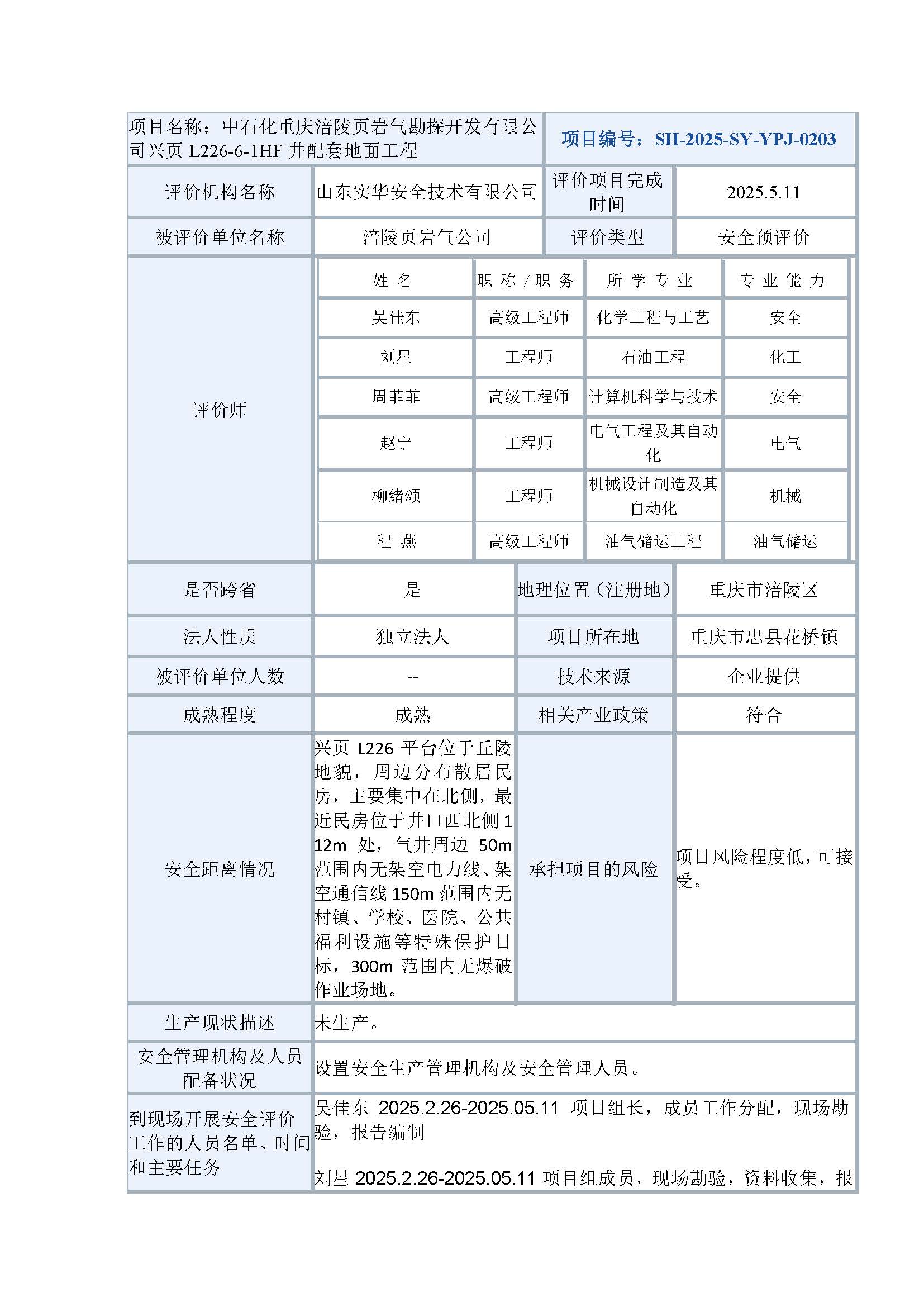 中石化重慶涪陵頁巖氣勘探開發(fā)有限公司興頁L226-6-1HF井配套地面工程安全預評價
