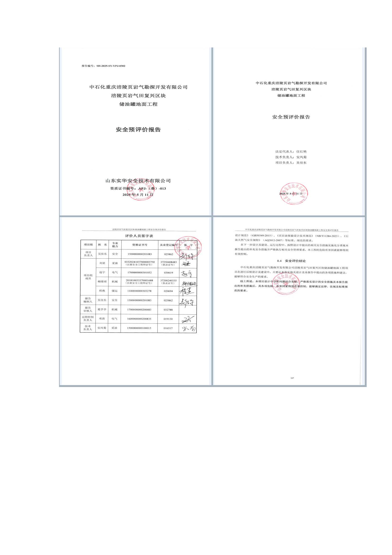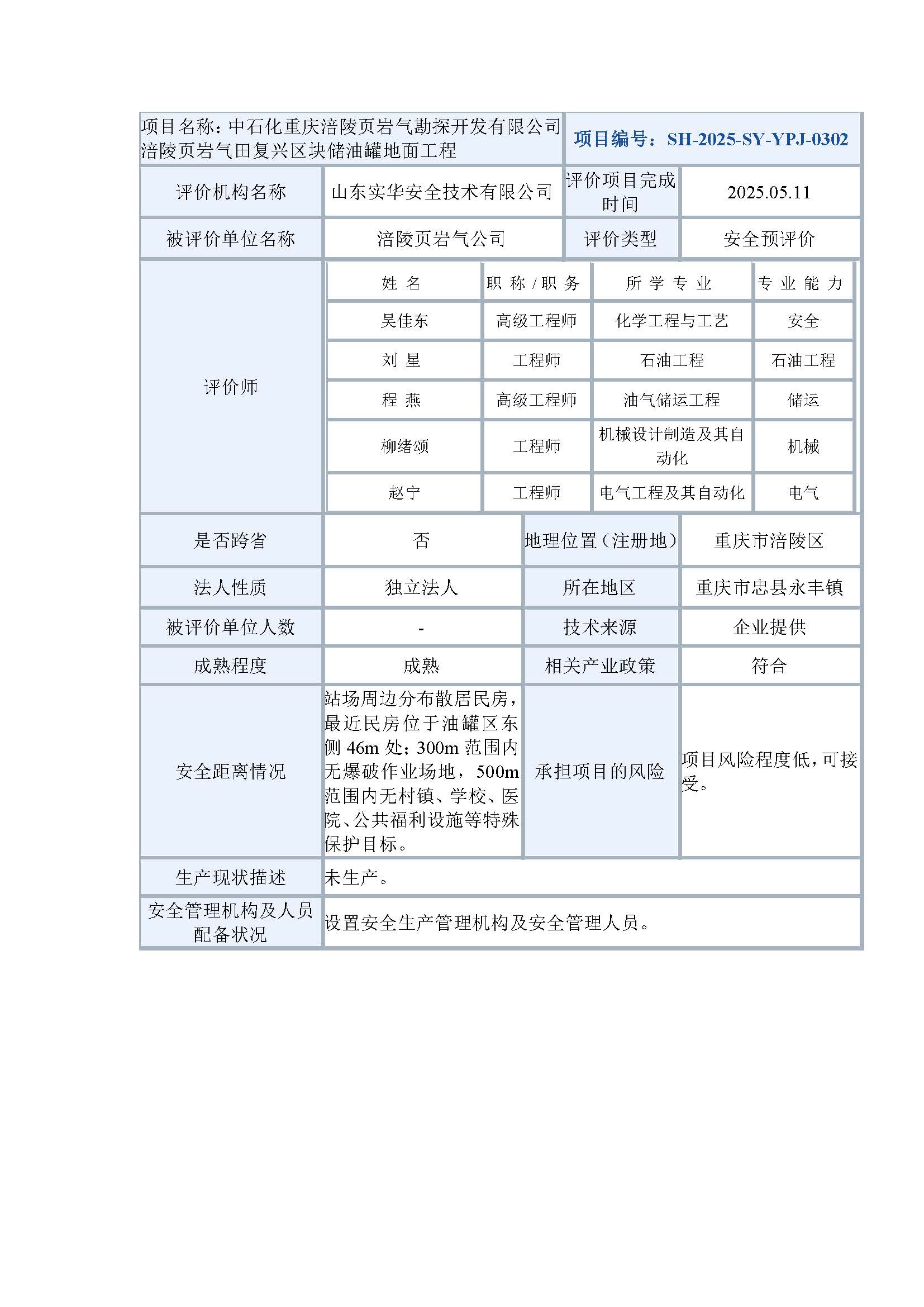 中石化重慶涪陵頁(yè)巖氣勘探開(kāi)發(fā)有限公司涪陵頁(yè)巖氣田復(fù)興區(qū)塊儲(chǔ)油罐地面工程安全預(yù)評(píng)價(jià)