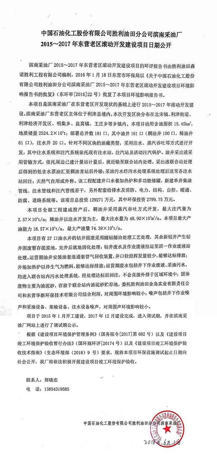 中國(guó)石油化工股份有限公司勝利油田分公司濱南采油廠2015~2017年?yáng)|營(yíng)老區(qū)滾動(dòng)開(kāi)發(fā)建設(shè)項(xiàng)目日期公開(kāi)