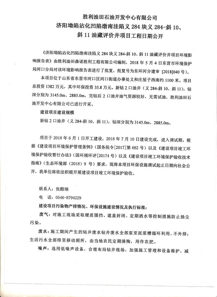 勝利油田石油開發(fā)中心有限公司濟(jì)陽坳陷沾化凹陷渤南洼陷義284塊義284-斜10、斜11油藏評價(jià)井項(xiàng)目工程日期公開